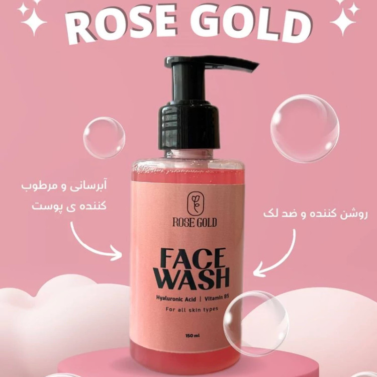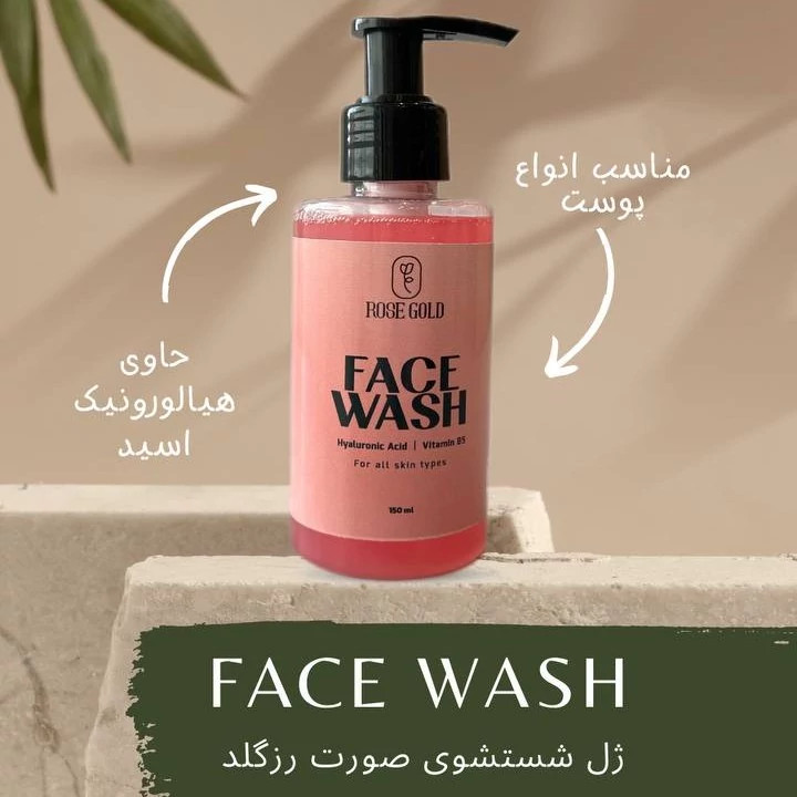 ROSE GOLD 🌸 Face Wash ژل شستشوی صورت رزگلد 🌸 🫧 حاوی هیالورونیک اسید و ویتامین B5 - جمع کننده منافذ باز پوست - کاهش التهابات و قرمزی پوست - کاهش اگزما و خارش پوست - روشن کننده پوست - آبرسان و کلاژن ساز - رفع جوش های چرکی و آکنه 💗 فاقد فسفات و مواد شوینده مضر 💗 دارای PH مناسب پوست های لک دار و جوشدار این ژل پوست شمارو مرطوب نگه میدارد و از خشکی و تحریک پذیری پوست جلوگیری میکند مناسب انواع پوست حتی پوست های چرب و جوشدار 😍 حجم 150 میل