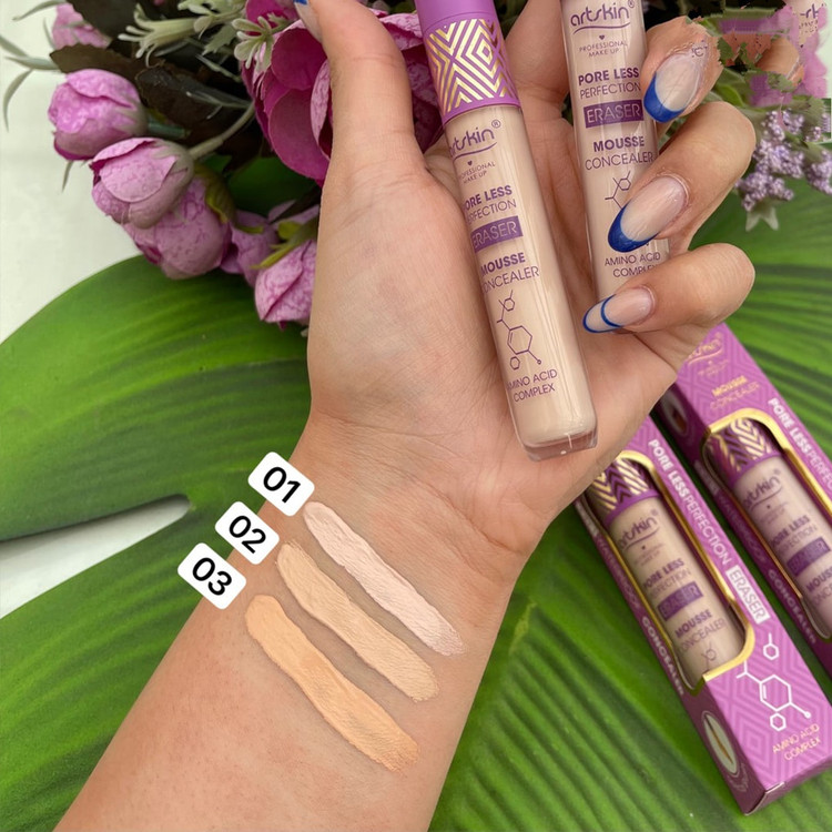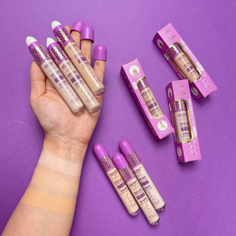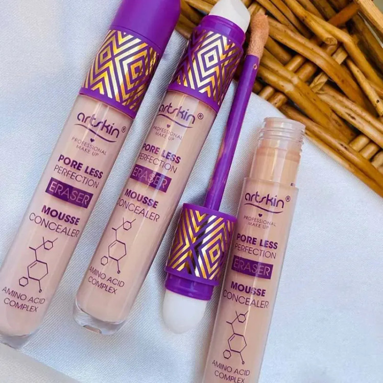 کانسیلر آرتسکین ARTSKIN کانسیلر مایع آرتسکین مایع بسیار سبک هستش و به هیچ عنوان به پوست حس بدی نمیده و پوشانندگی فوق العاده ای دارد . کانسیلر های مایع نقص های صورت را به صورت کامل می پوشاند و پوستی کاملا یک دست را به شما هدیه می دهد . بیشترین استفاده از این محصول برای پوشاندن سیاهی دور چشم می باشد . این محصول دارای ترکیبات گیاهی می باشد و به هیچ عنوان به پوست آسیب نمی رساند و درواقع ویتامین ها و پروتئین هایی را دارا می باشد که برای پوست لازم و ضروری می باشد . کانسیلر مایع آرتسکین رطوبت پوستتون را تامین میکند . این کانسیلر به صورت رژ لب است و برس آن برای کار کردن بسیار راحت می باشد و به راحتی روی پوست کشیده می شود و با اون حتی می توانید خطوط باریکی را که نیاز دارید را روی صورتتون بکشید . پوشانندگی بسیار بالا دارای گبندی کاملا کاربردی پوشش دهی سیاهی دور چشم پوشاندن نقاط جوش صورت
