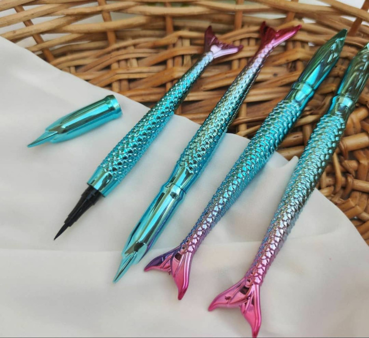 خط چشم ماژیکی پری دریایی بسیار روان فوق العاده باکیفیت طراحی بسیار زیبا و فانتزی ضدآب waterprof ماندگاری 24 ساعته کاملا مشکی و مات دارای قلم بسیار زیبا ایجاد خطی صاف و یکدست