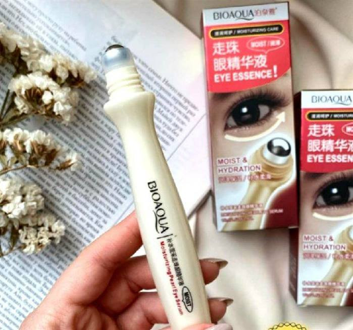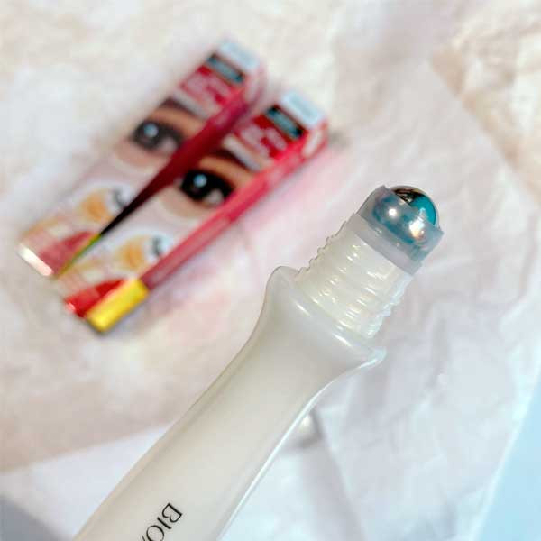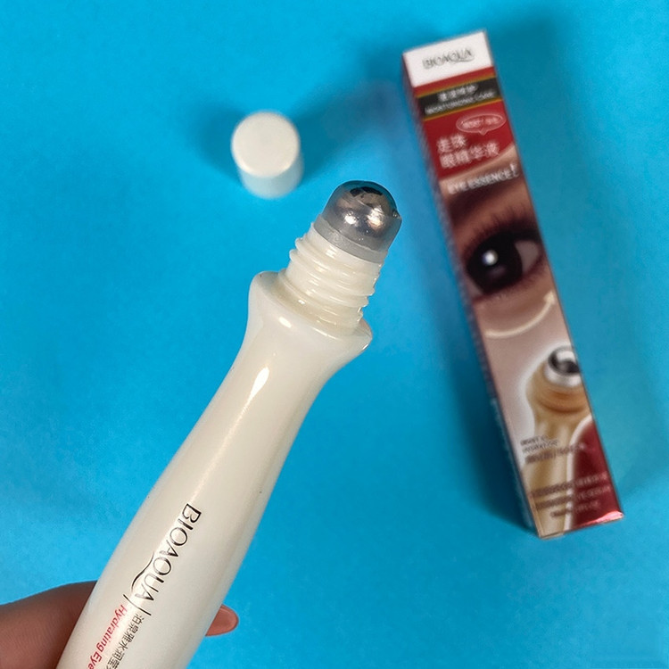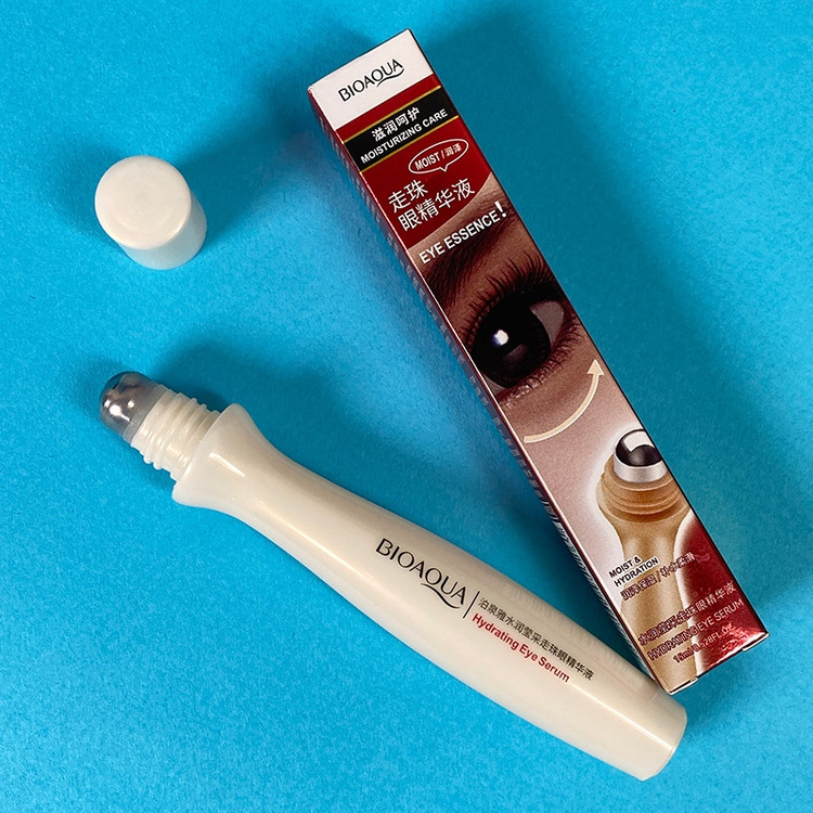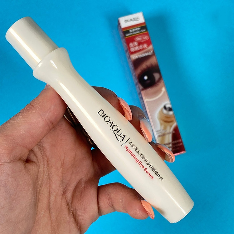 کرم دور چشم غلطکی بیوآکوا دارای عصاره انگور و عصاره رزماری دارای سرغلطکی جهت ماساژ و جذب بهتر مواد ضد پیری و ضد چروک مرطوب کننده قوی رفع خستگی و چین وچروک های اطراف چشم موثر در افزایش گردش خون