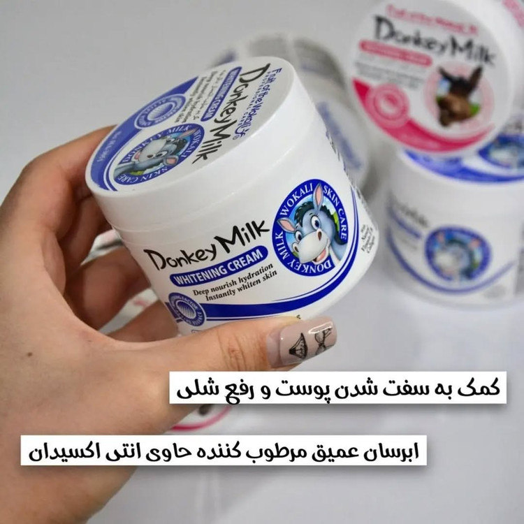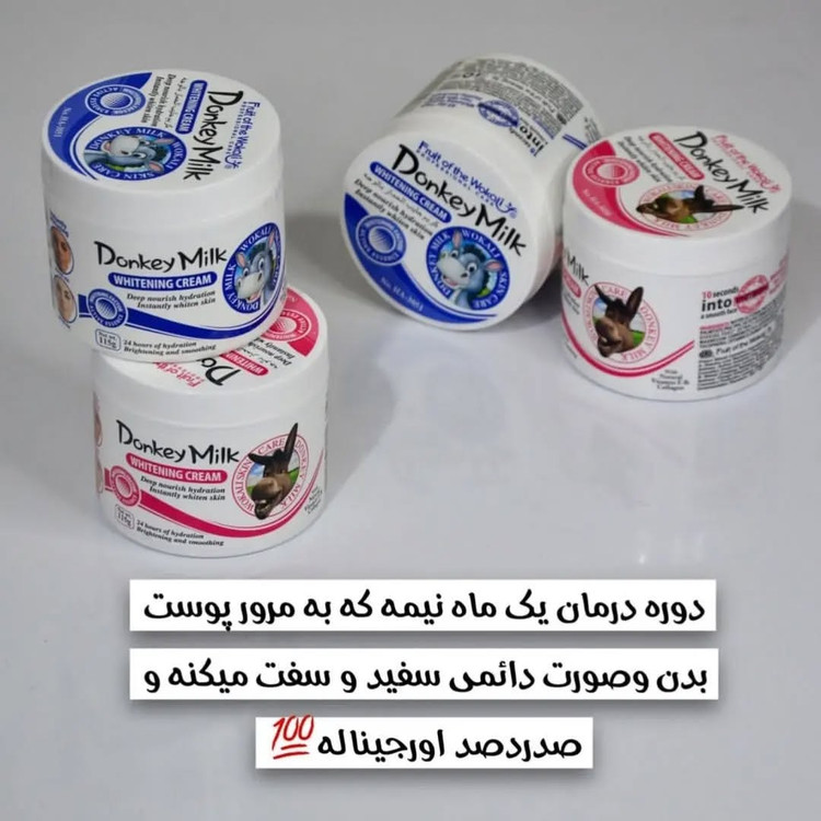 سفیدکننده درمانی فوری و دائمی ساخت فرانسه کاملا اورجینال و اصلی شیر الاغ یک جوان کننده طبیعی و قدرتمند پوست است که از پیری جلوگیری میکند و به سفت شدن پوست کمک میکند رفع تضمینی تیرگی بیکینی زیر بغل زانو و…‼ سفید شدن فوری پوست و آبرسانی عمیق حاوی ویتامین E و کلاژن و منیزیوم ترمیم کننده پوست و حاوی آنتی اکسیدان مرطوب کننده پوست سفت و لیفت کننده پوست لطیف کننده پوست حجم ۱۱۵ گرم تاریخ انقضا تا ۴سال دیگه برای استفاده صورت و بدن حتی جاهای خصوصی کاملا ضدابه و اصلا به لباس رنگ پس نمیده بشدت بافت سبکی داره و اصلا چرب نیست برای اطلاع از کلمه (قیمت) رو کن